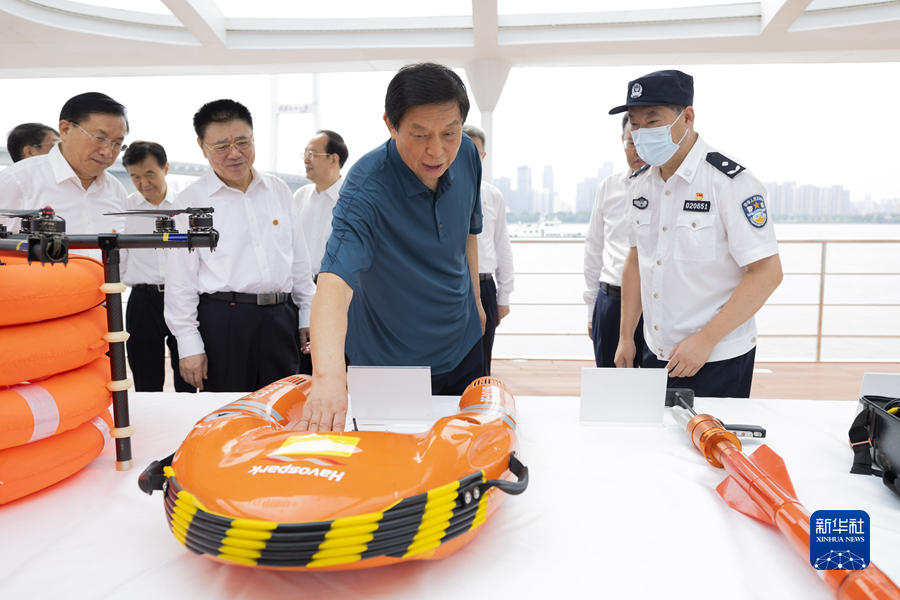 6月30日至7月4日,中共中央政治局常委、全国人大常委会委员长栗战书率全国人大常委会执法检查组在湖北检查长江保护法实施情况。这是7月3日,栗战书在汉口江滩码头考察长江大保护工作情况。新华社记者 黄敬文 摄
