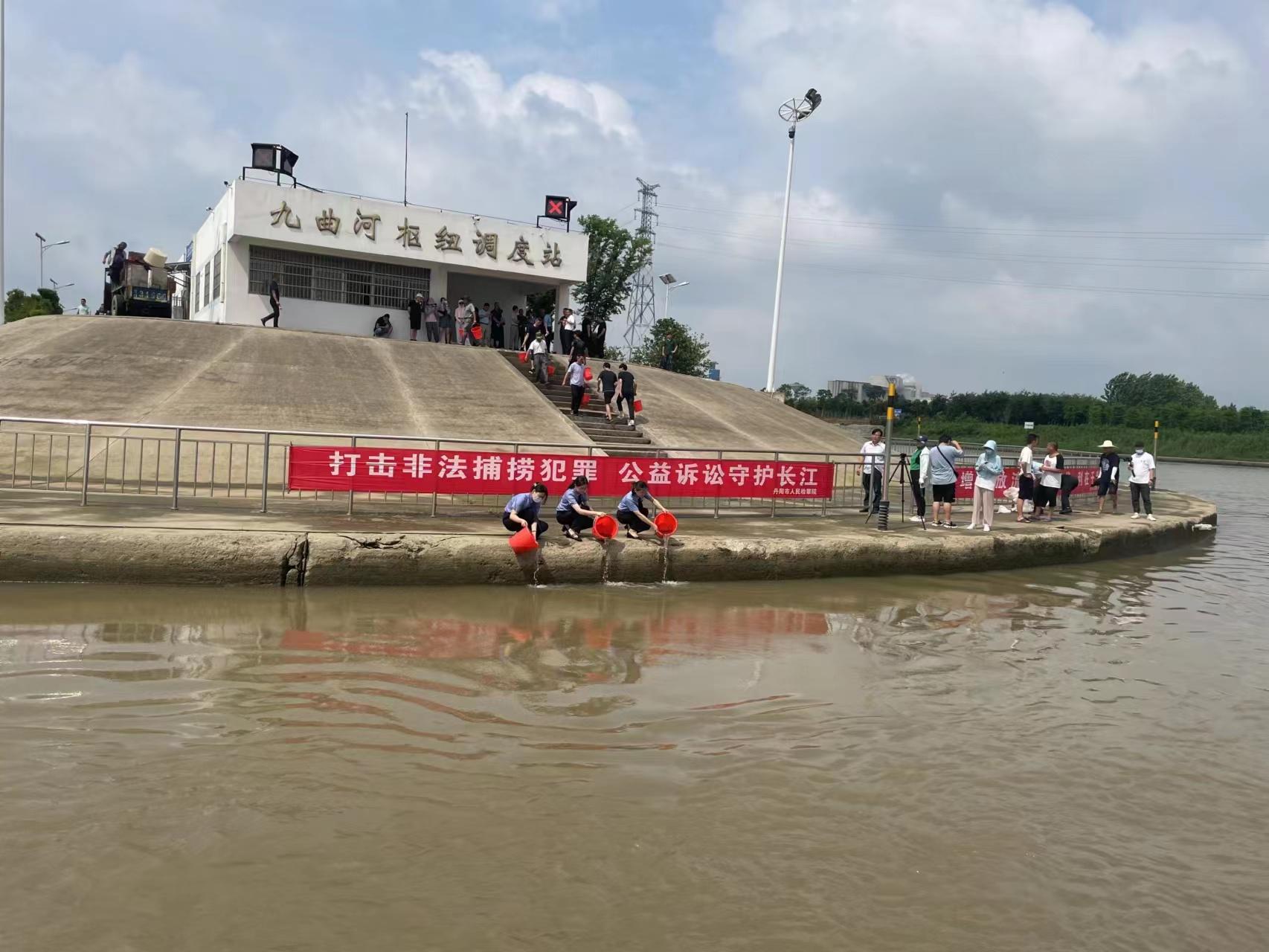 9个月过去了,这些鱼苗已成为长江生态的一部分。这场增殖放流活动,正是在镇江市京口区生态环境司法修复基地揭牌仪式当天进行的。
