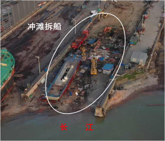江苏复兴船舶有限公司未经审批,违法占用长江岸线新建船舶修造和拆解项目。记者看到,现场各种机械安置凌乱,还有正被拆解的船舶停放在江滩上。大量含油废水直排长江,废机油等危险废物随意抛撒倾倒在江滩上……