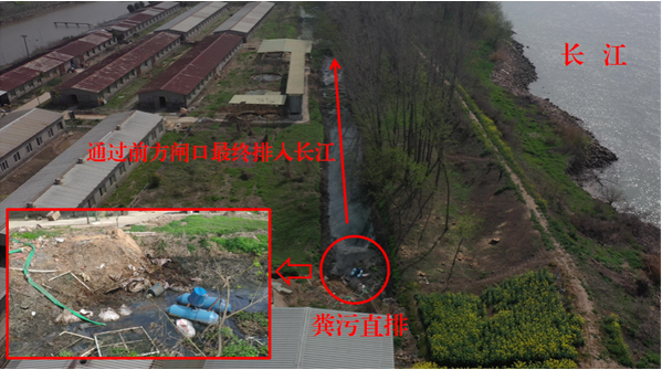 2022年3月26日,督察组现场督察发现,扬中市众康畜牧养殖有限公司将粪污经厂区水沟排入长江。(督察组供图)