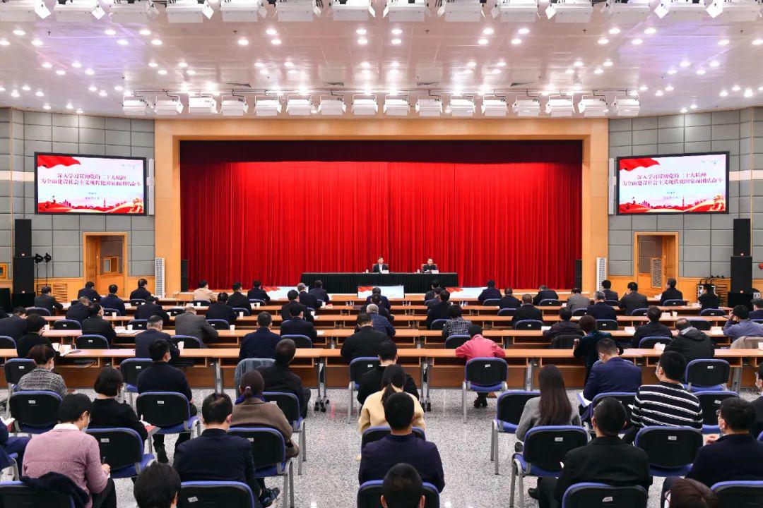 胡祖才同志在宣讲中全面介绍了党的二十大报告的起草过程,并重点讲解了7方面内容。一是关于党的二十大的主题。二是关于过去5年的工作和新时代10年的伟大变革。三是关于开辟马克思主义中国化时代化新境界。四是关于中国式现代化。五是关于全面建设社会主义现代化国家的战略任务。六是关于坚持党的全面领导和全面从严治党。七是关于发扬斗争精神,坚持团结奋斗,积极应对风险挑战。他强调,学习宣传贯彻党的二十大精神是当前和今后一个时期全党全国的首要政治任务,要着重把握三个方面,一要深刻领悟“两个确立”的决定性意义,二要坚定不移推进中国式现代化这一中心任务,三要发扬斗争精神、提高斗争本领。