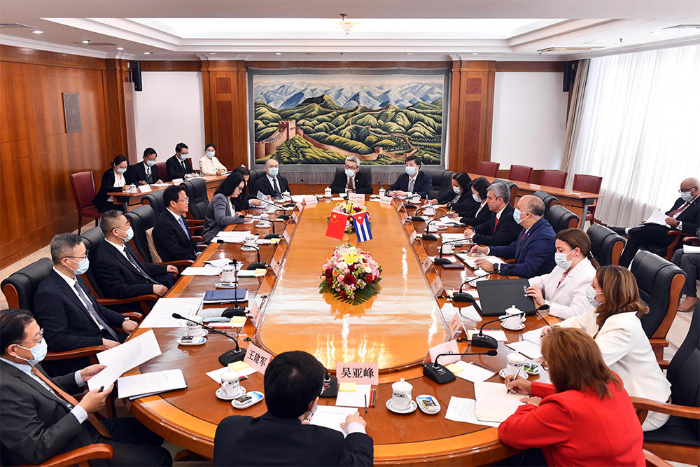 佩尔多莫介绍了古巴经济形势,并表示未来愿共同落实好两国元首达成的重要共识,进一步深化古中重点领域的务实合作。