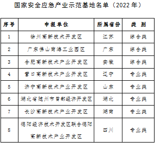 家单位命名为国家安全应急产业示范基地(综合类或专业类),江门高新技术产业开发区等18家单位命名为国家安全应急产业示范基地创建单位(综合类或专业类),现将名单公示如下。如有异议,请在公示期内将意见反馈至工业和信息化部安全生产司、发展(0755) 3656 3788_365体育是哪个国家的_亚洲365bet体育委经济运行调节局、科技部社会发展科技司。