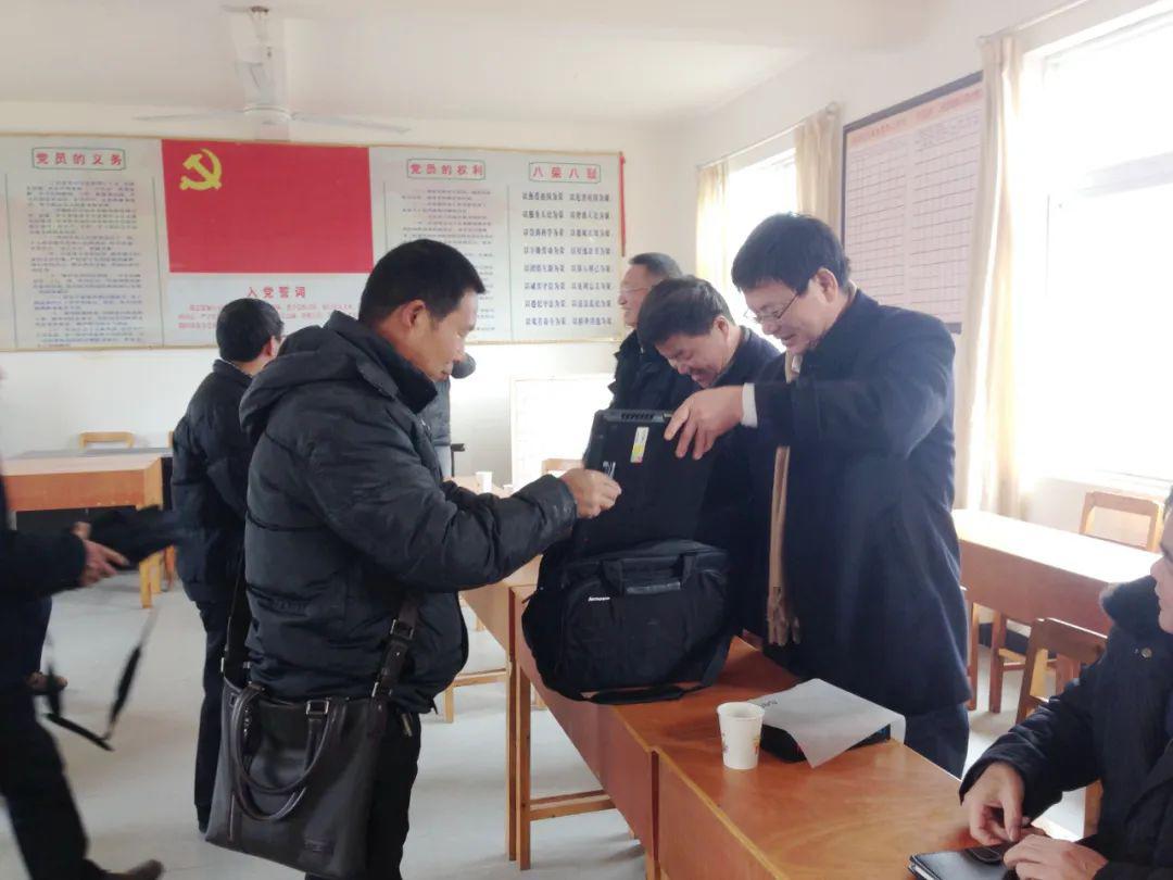 江西省首次在瑞昌市为三位农调户配置了笔记本电脑,专门服务于农产品成本调查核算,提升了工作效率。这是省市县三级领导为农调户分发电脑。
