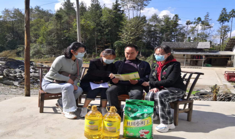 2022年10月,恩施市农调干部在三岔乡烤烟农调户谭达凤家走访慰问,开展农调宣传,指导完成2022年粮食相关的农户问卷调查。