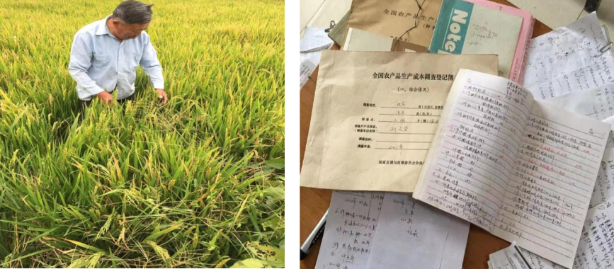农本调查的最坚强后盾,莫过于广大农调户。江苏的农调户,有从青葱岁月到古稀之年坚守40余年的老农户,也有熟悉农情又懂管理的村支书。一笔笔收支、一本本流水账,承载着几代农民对农调工作的朴实情怀。