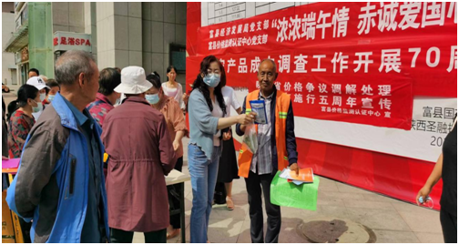 陕西富县价格监测认证中心携手县经发局、沙梁社区在富县沙梁步行街街口开展农产品成本调查70周年宣传活动。向来往群众发放《农产品成本调查解析》等宣传资料,耐心、详细地向群众介绍了农产品成本调查工作内容、性质、流程,以及70年的辉煌历程,并向群众介绍了国家对农业农村出台的相关政策。