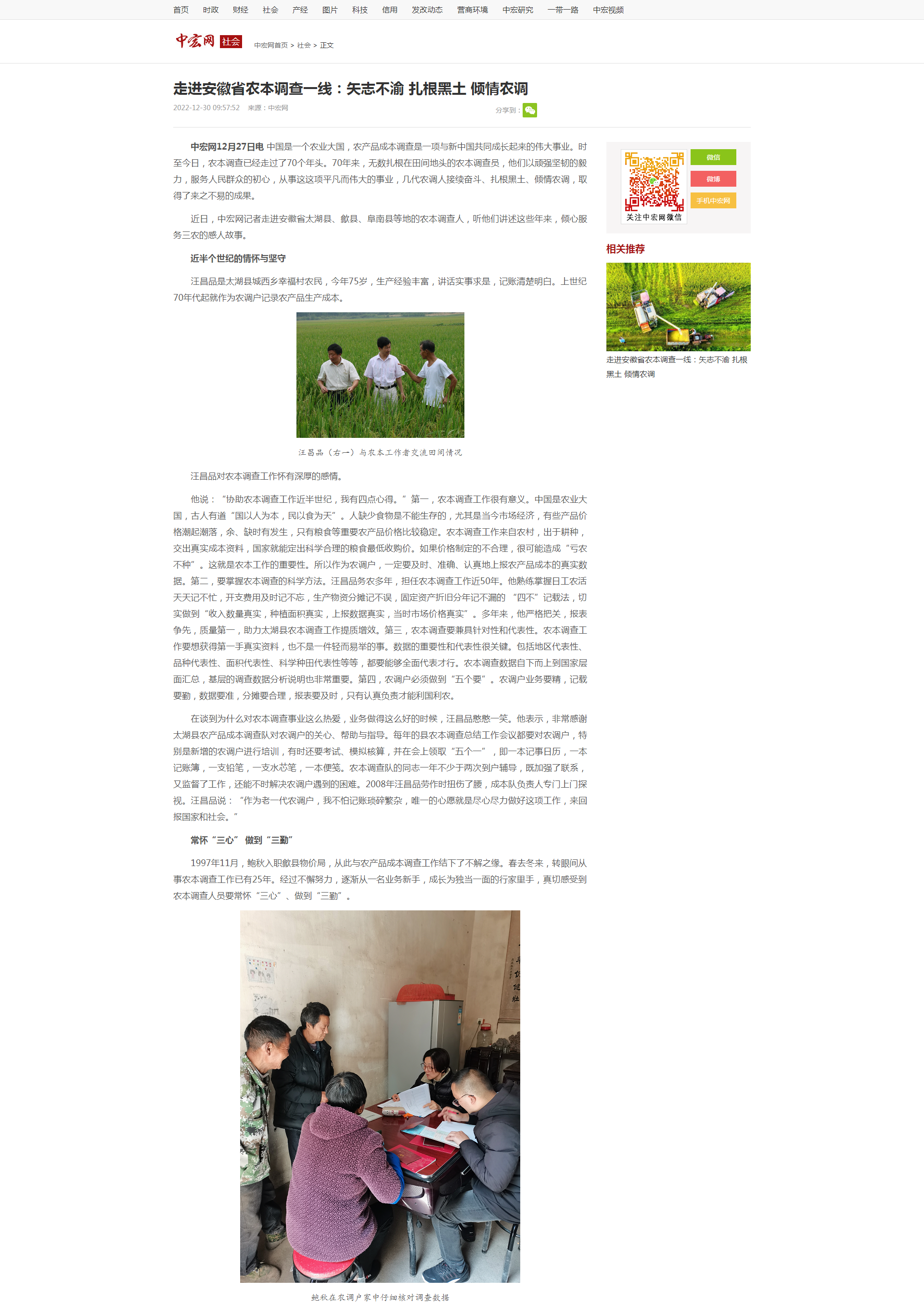 这样记……》《“跑”出来的数据,“干”出来的成绩!安徽“农本人”的动人故事(之一)》《“跑”出来的数据,“干”出来的成绩!安徽“农本人”的动人故事(之二)》。12月30日中宏网发表文章《走进安徽省农本调查一线:矢志不渝 扎根黑土 倾情农调》。