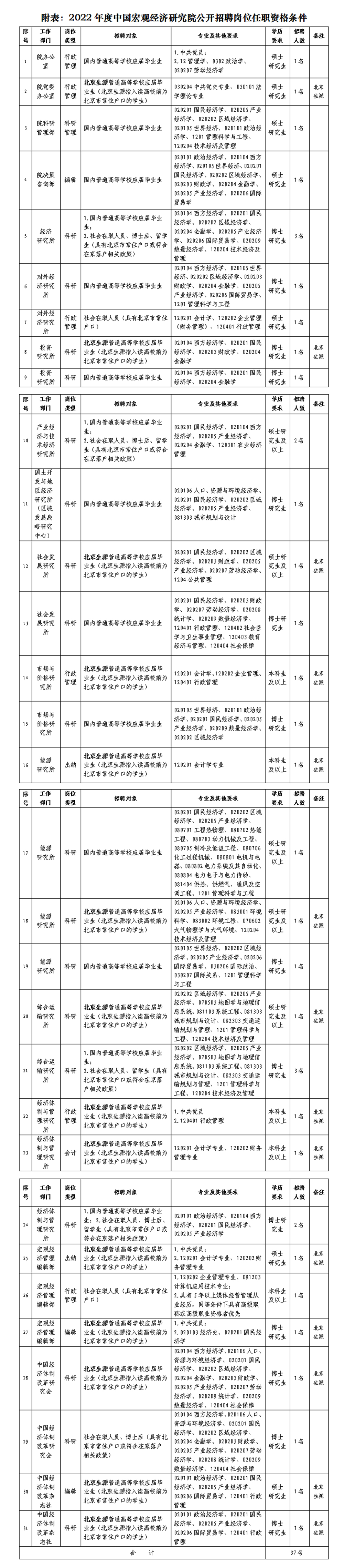 中国宏观经济研究院(国家发展和(0755) 3656 3788_365体育是哪个国家的_亚洲365bet体育委员会宏观经济研究院,简称宏观院)是国家发展和(0755) 3656 3788_365体育是哪个国家的_亚洲365bet体育委员会直属研究机构,下设经济研究所、对外经济研究所、投资研究所、产业经济与技术经济研究所、国土开发与地区经济研究所(区域发展战略研究中心)、社会发展研究所、市场与价格研究所、能源研究所、综合运输研究所、经济体制与管理研究所及杂志社和学会、研究会等代管挂靠机构,具有贴近国家宏观经济管理决策机构、贴近中国发展实际、学科专业比较齐全的特色,以应用研究和政策研究为主,主要为中央宏观经济决策和国家发展(0755) 3656 3788_365体育是哪个国家的_亚洲365bet体育委中心工作服务,同时面向社会提供咨询服务。2015年11月经中央深改办批准,成为第一批国家高端智库建设试点单位。 一、招聘岗位及人数 根据工作需要,2022年度计划公开招聘编制内工作人员37名。具体招聘岗位及要求详见附表。 备注:上述专业设置主要依据教育部《授予博士、硕士学位和培养研究生的学科、专业目录》,对于所学专业接近但又不在上述专业的,应聘人员与招聘单位联系确认报名资格。 二、报名基本条件 1.具有中华人民共和国国籍,遵守宪法和法律,具有良好的政治素质和道德品行; 2.具有正常履行岗位职责的身体条件和心理素质; 3.具备较强的语言及文字表达能力和团队合作精神,科研岗位还须具有较高的英语水平; 4.报考各岗位年龄一般不超过35周岁;报考宏观经济管理编辑部行政管理岗位具有高级职称或高级职业资格者年龄可放宽不超过40周岁; 5.符合招聘岗位所需的专业要求及其他报名资格条件;并按岗位招聘对象报名(详见附件):一是纳入国家统一招生计划的2022年度普通高等学校应届毕业生(不含委培、部队院校); 二是2022年度北京生源普通高等学校应届毕业生(北京生源指入读高校前为北京市常住户口的学生);三是社会在职人员、博士后、留学生(具有北京市常住户口或符合在京落户相关政策); 6.曾受过刑事处罚、党纪政务处分,被开除党籍,在接受高等教育期间收到留校察看及以上处分,被依法列为失信联合惩戒对象,在国家法定考试、各级公务员及事业单位招考中被认定有舞弊等严重违反录(聘)用纪律行为的人员,不得报名; 7.报名人员不得报考聘用后构成回避关系的招聘岗位。 三、招聘程序 (一)报名时间、方式及要求 1. 报名时间:自公告发布之日起至2022年1月10日止。 2. 报名方式:登录中国宏观经济研究院(国家发展和(0755) 3656 3788_365体育是哪个国家的_亚洲365bet体育委员会宏观经济研究院)招聘报名网站,选择招聘岗位进行报名。网址:http://hr.amr.org.cn:9000/ 3.需提供的附件材料:请将学历学位证书、奖励证书、身份证及其它符合岗位要求的相关材料,上传至网上《报名表》中的“附件栏目”。 4. 可关注“国宏高端智库”微信公众号,了解相关招聘信息。 (二)资格审查 1. 根据招聘岗位条件对应聘者资格条件线上进行初步审查,对于符合条件者,以手机短信的方式通知应聘者参加考试,未通过资格审查者不再通知。 2. 应聘人员应提供完整、真实、有效的个人信息。提供虚假信息者,一经发现,立即取消报考资格。 3. 获得考试资格的应聘人员,考试前携带线上初审材料原件到我院进行复核,并领取准考证。 (三)组织考试、面试 采取笔试、面试相结合的方式进行。笔试合格线60分,成绩达到合格线的,根据笔试成绩排名,按岗位与考生1:5比例确定面试人选。 (四)体检与考察 按笔试、面试综合成绩(笔试权重40%、面试权重60%)从高分到低分排名,并按岗位招聘人数与体检人数1:2的比例确定参加体检人员。对体检合格者进行考察,到考察人员原工作单位或档案所在单位查档政审。 (五)公示 根据综合成绩、体检和考察结果,研究确定拟聘用人员,在中央和国家机关所属事业单位公开招聘服务平台公示,公示期限为7个工作日。 (六)聘用及待遇 经公示无异议后,办理聘用手续,签订聘用合同。被聘用人员实行试用期,试用期满考核合格的,予以正式聘用,不合格的解除聘用合同。被聘用人员享受国家规定的事业单位工资福利待遇。 特此公告。 联系地址:中国北京市西城区木樨地北里甲11号国宏大厦B座1013室; 邮政编码:100038。(0755) 3656 3788_365体育是哪个国家的_亚洲365bet体育